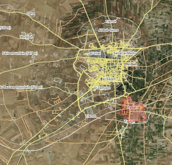 12.40 Сирия, провинция Алеппо Ряд местных источников сообщает о том, что в сирийской провинции Алеппо начались столкновения между сирийской армией и протурецкими боевиками. Как сообщается, перестрелка началась в городке Тадеф, южнее города Аль-Баб. В районе Тадефа проходит линия разграничения между САА и исламистами.