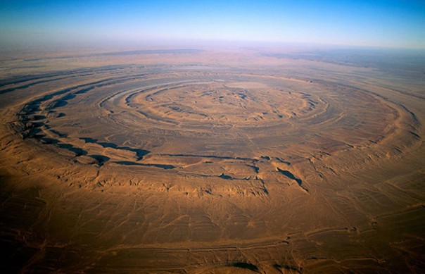 Структура Ришат, или Глаз Сахары, как еще называют это место, представляет из себя геологическое образование с циркулярным рельефом в мавританской части пустыни Сахара рядом с поселением Уадан. Окруженный тысячами квадратных километров совершенно безжизненной и бесформенной пустыни этот участок рельефа в виде концентрических окружностей диаметром 40-50 километров заметен даже из космоса.