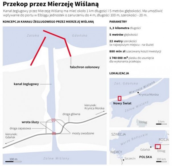 Мотивируется необходимость строительства канала тем, что порт Эльблонг стагнирует. А корень зла, дескать, заключается в том, что польские и другие суда, чтобы проследовать в Эльблонг, должны пройти через российские территориальные воды мимо Балтийска; для Качиньского это повод говорить о «зависимости от России».