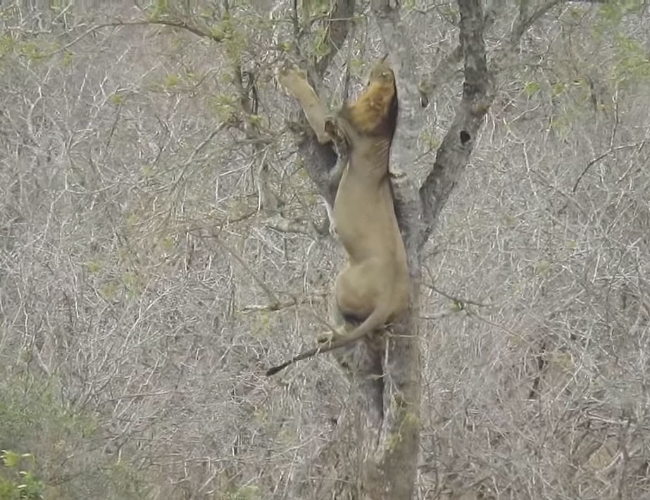 Грэм понимал, что хороших кадров не будет – но решил остаться и понаблюдать. Результат превзошел все ожидания. Оказалось, что вместе с туристами за охотой наблюдали два льва: один из них решил отобрать у леопарда добычу, которую тот затащил на дерево (чтобы уберечь от гиен, хищных птиц и других падальщиков).