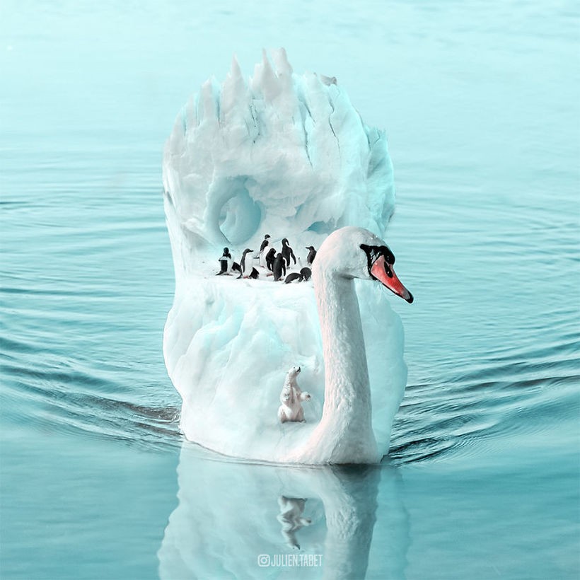 Молодой француз Жюльен Табет обладает незаурядной фантазией и великолепными навыками работы в фотошопе. Он не считает редактирование изображений своей страстью, но признается, что его увлекает игра воображения, а фотошоп лишь позволяет воплотить ее на картинке и показать всему миру.