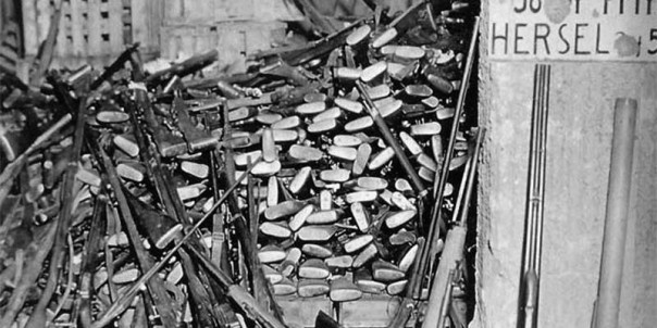 После создания фольксштурма в октябре 1944 года довольно быстро выяснилось, что вооружать эту инвалидно-тинейджерскую орду особо нечем; поэтому шутки про «одну винтовку на троих» были, в общем, не очень-то и шутками.