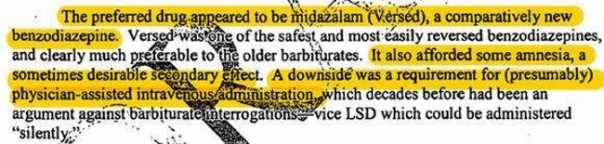 Были извлечены на свет материалы старой недоброй программы «МК-Ультра» и дан зелёный свет проекту с циничным названием «Лекарство» (Medication). По данным теоретических исследований, приведённым в документе, лучше всего на роль «сыворотки правды» должен подходить мидазолам (коммерческое название — «Версед»).