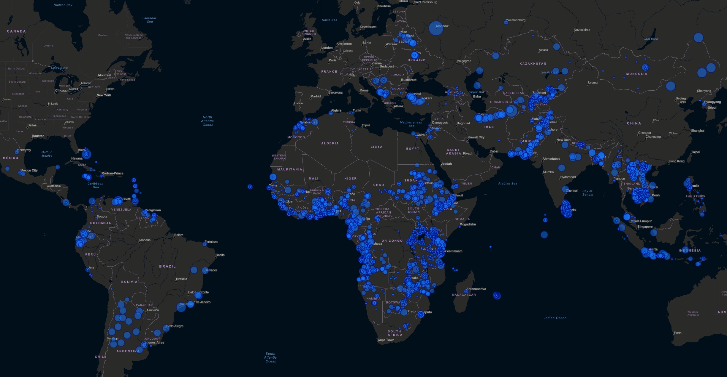 Карта составлена по отчету AidData, где отмечается, что Китай является крупнейшим в мире инвестором в объекты инфраструктуры и проекты развития. Источник