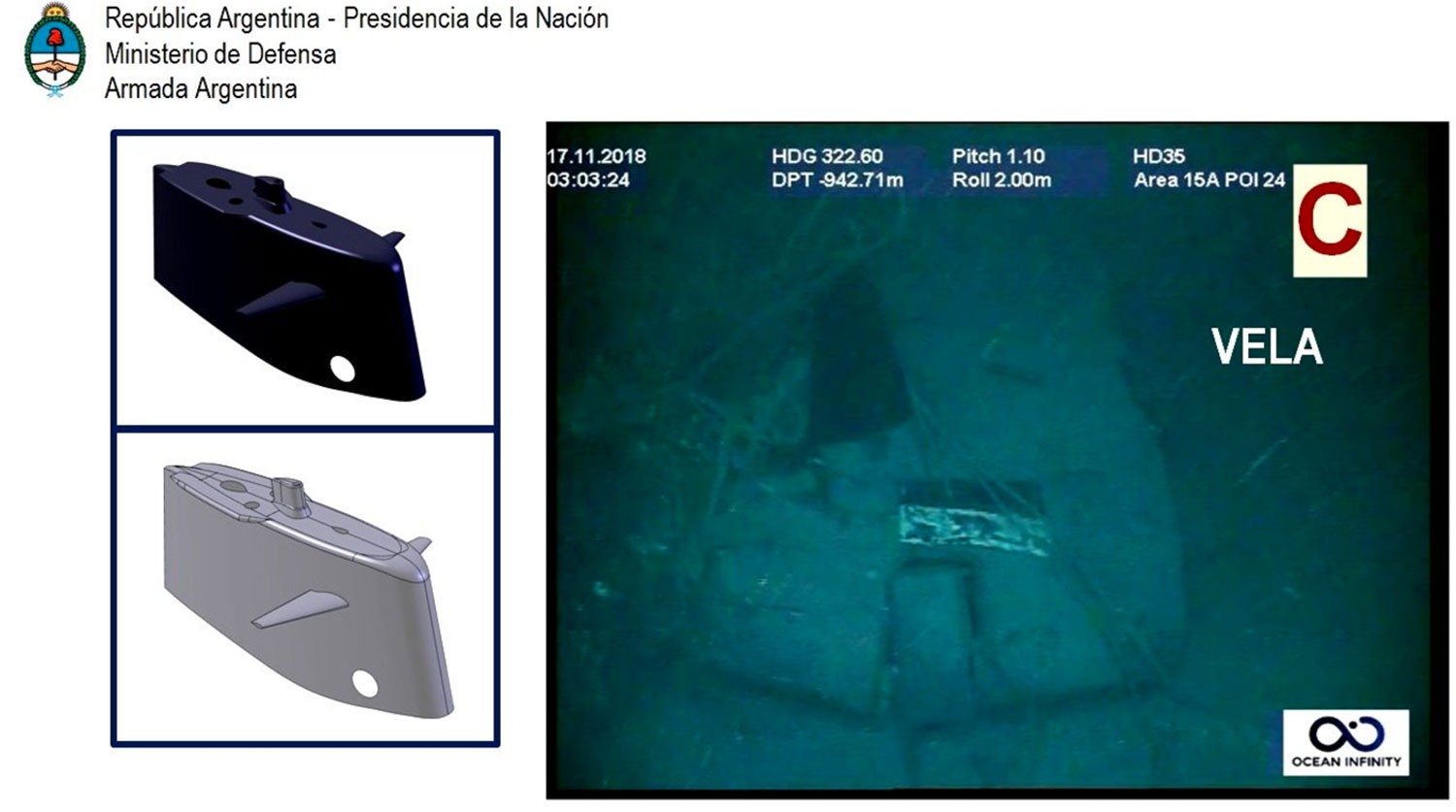 Ранее ВМС Аргентины заявили об обнаружении подлодки "Сан-Хуан". Установить ее местонахождение помогла американская компания Ocean Infinity.