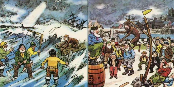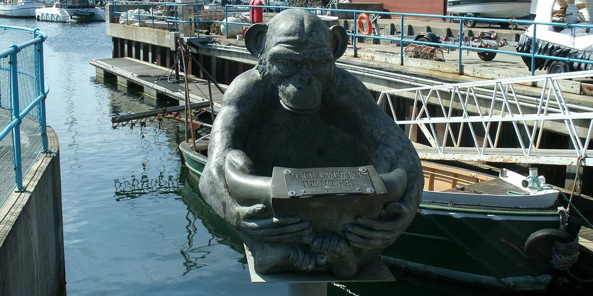 Дело было во времена наполеоновских войн. Французский корабль потерпел крушение рядом с Хартлпулом — небольшим городком на юге Англии. Все члены экипажа погибли. Выжила только находившаяся на борту обезьяна, одетая в шуточную военную форму.