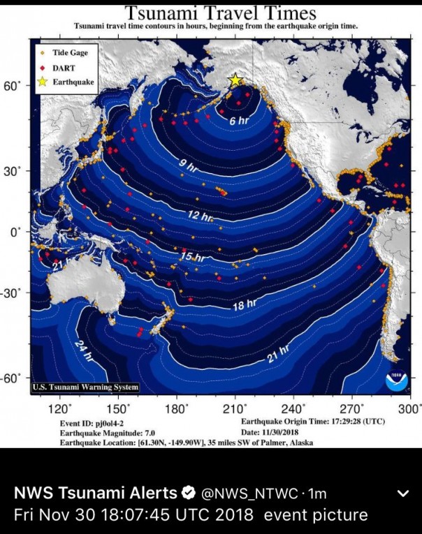 На Аляске (США) произошло землетрясение мощностью 7 баллов. Местные СМИ публикуют фотографии разрушений и предупреждают об опасности образования цунами, передает корреспондент «ПолитНавигатора».