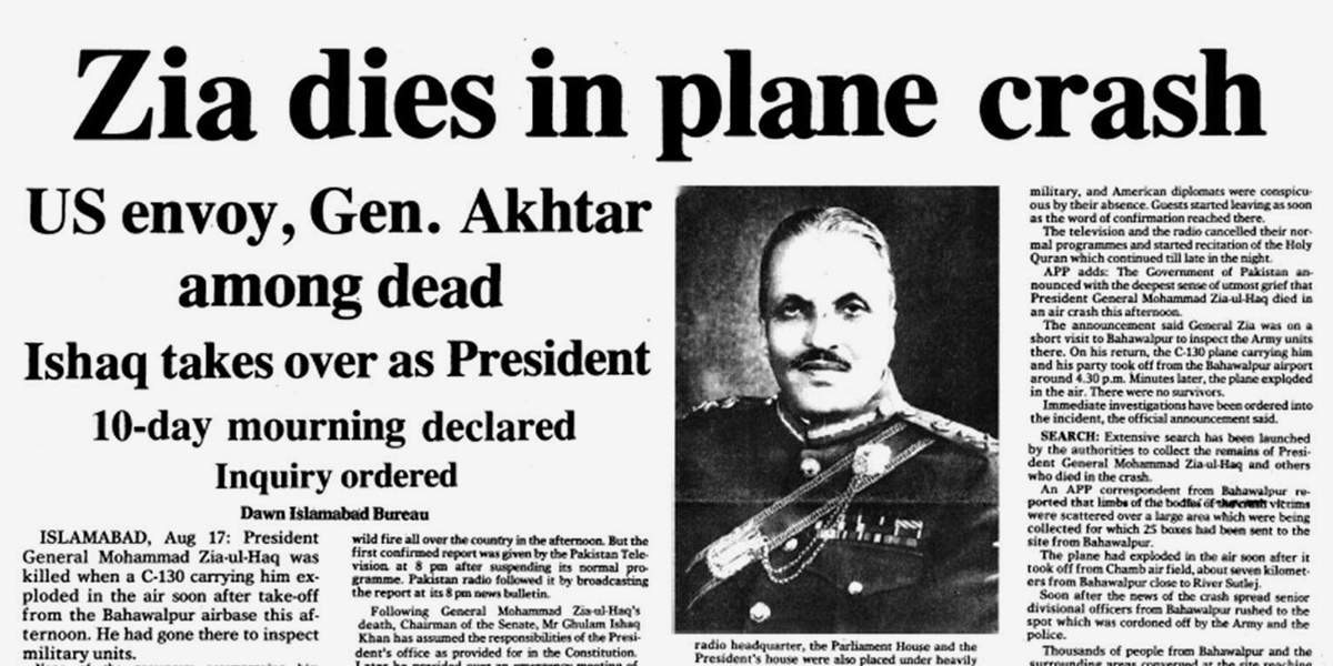 Семнадцатого августа 1988 года возле города Лахор в Пакистане разбился C-130 «Геркулес». На его борту находился президент страны Мухаммад Зия-уль-Хак, целая группа высокопоставленных военных и посол США. Выжить не удалось никому. Самописцев на борту самолёта, как ни странно, не оказалось.
