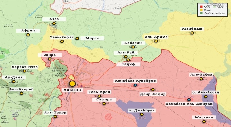 Алеппо. На севере провинции Алеппо продолжаются столкновения между курдскими Отрядами народной самообороны (YPG) и «Сирийской свободной армией» (ССА), передает военный источник на своей странице в социальной сети Twitter (@riskmap_). Ранее во время нападения курдских радикалов на позиции протурецкой группировки было нейтрализовано два члена ССА.