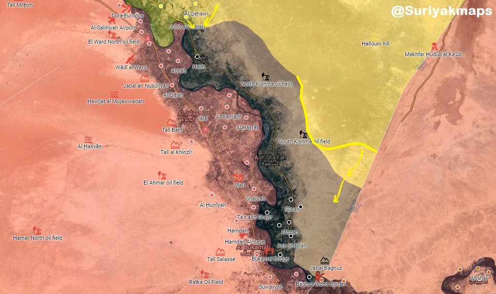 Дейр эз-Зор. Военный источник передает на своей странице в социальной сети Twitter (@jacksanders1965), что террористы «Исламского государства» захватывают новые территории на востоке провинции Дейр-эз-Зор, несмотря на удары ВВС международной коалиции и обстрелы со стороны Демократических сил Сирии (SDF).