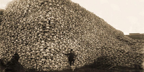 Груды бизоньих черепов на фотографии подготовлены к отправке на фабрики для производства удобрений.