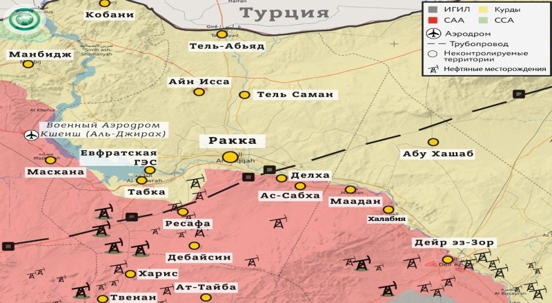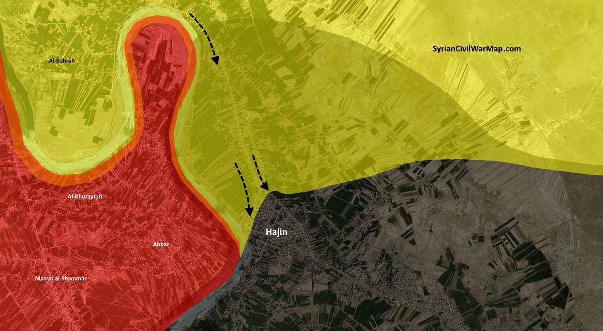 Дейр-эз-Зор. Согласно данным курдского источника в сети Twitter (@VivaRevolt), бандгруппам «Демократических сил» при помощи авиации западной коалиции удалось вернуть часть недавно утраченных территорий на юго-востоке провинции Дейр-эз-Зор. Утверждается, что они продвинулись вплоть до северных окраин города Хаджин.
