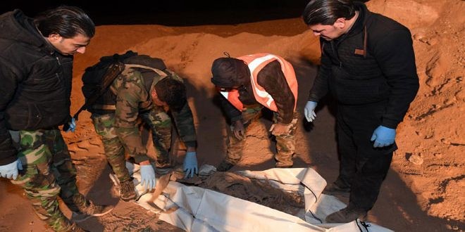Об этом сообщил корреспондент агентства САНА в Дейр-эз-Зоре, добавив, что отряды национальной обороны и Сирийского общества Красного Полумесяца извлекли 101 тело. На телах погибших остались следы пыток. Извлечение тел жертв террористов продолжается.