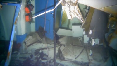 Видео показывает раздавленные каюты и рабочие зоны, вздыбившийся пол и свисающие с потолков остатки вентиляции. Можно осмотреть то, что было жилыми помещениями, кубриками, машинным отделением и генераторной. Танкер, который практически не пострадал, проделал дыру размером приблизительно 45 на 8 метров, и вода хлынула в то, что считалось водонепроницаемыми отсеками.