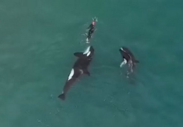 Жительница новозеландского полуострова Коромандел отправилась на один из местных пляжей. Она отплыла от берега не так далеко, когда заметила рядом в воде силуэты. Сначала Джуди приняла их за дельфинов, но увидев яркие белые пятна на спинах «соседей», поняла – перед ней косатки (лат. Orcinus orca).