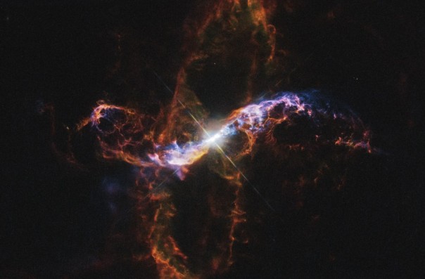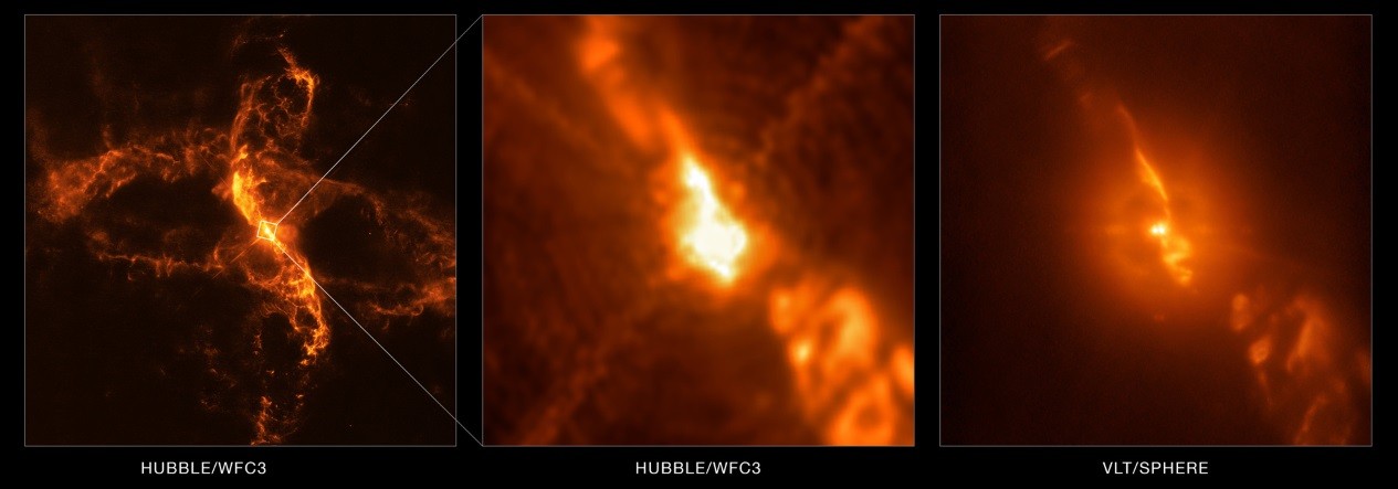 «Предсмертные конвульсии» огромной звезды уже сами по себе грандиозны по масштабу, но влияние ее компаньона превращают их в действительно драматический космический спектакль. Несмотря на свои скромные размеры, белый карлик постоянно срывает оболочку с завершающего свой жизненный путь красного гиганта. Процесс сопровождается активным выбросом вещества в окружающее пространство. Снимки земных обсерваторий демонстрируют формируемые гигантом джеты, а также множество окружающих его тонких структур.