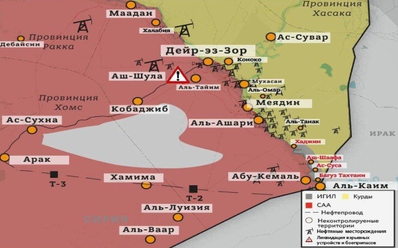 Боевики ИГ, переправившись через Евфрат, атаковали позиции САА в поселке Аль-Сиял (Al-Siyal). После нападения, игиловцы вернулись обратно за Евфрат. Сообщается, что в результате внезапной атаки погибли более 20 военнослужащих Сирийской армии.
