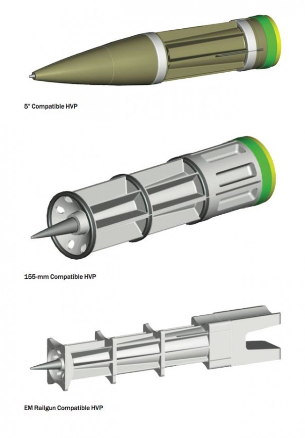 Изменить эту ситуацию должна была программа по созданию «единого» универсального снаряда для корабельной артиллерии по программе HVP. Новый боеприпас должен был быть приспособлен для стрельбы, как из 127-мм оружия эсминцев «Орли Берк», так и из 155-мм орудий эсминцев «Зимволт». А еще он должен был «подходить» для создаваемого для флота злополучного рельсотрона (электро-магнитной пушки).