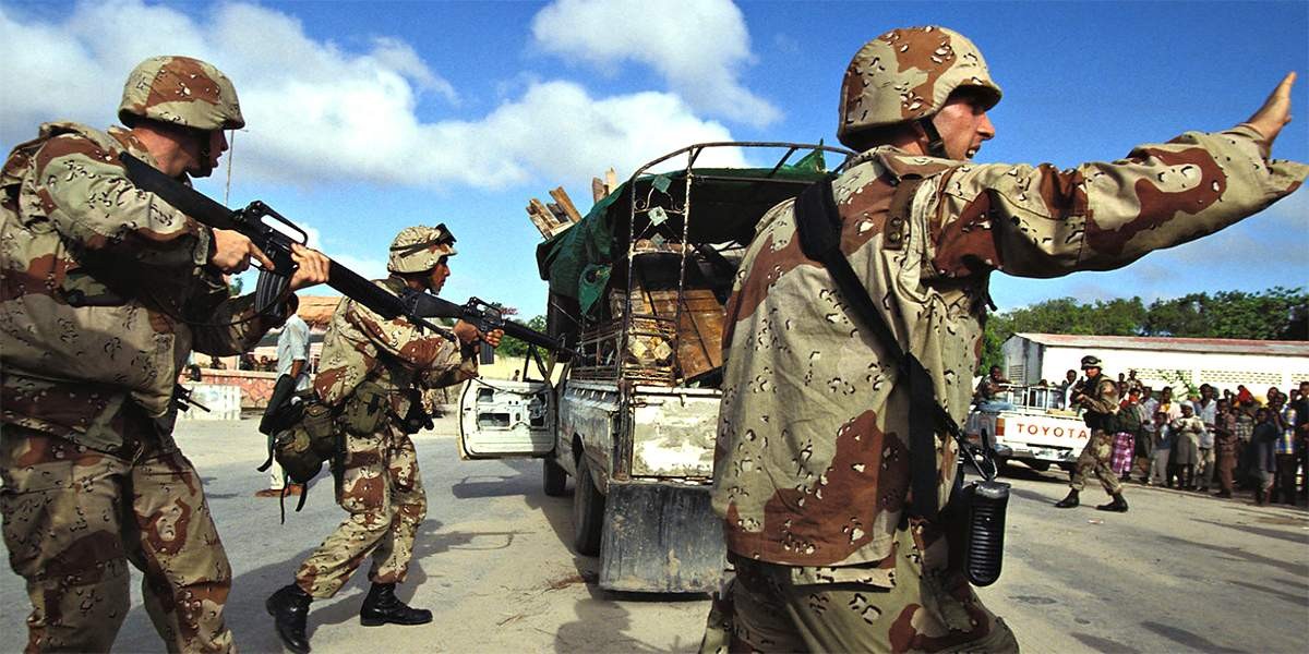 Третьего декабря 1992 года Совбез принял резолюцию 794. Она разрешала международным силам использовать «все необходимые средства» для нормализации ситуации в Сомали. Девятого декабря волны морской пехоты США устремились с десантных кораблей к сомалийскому побережью.