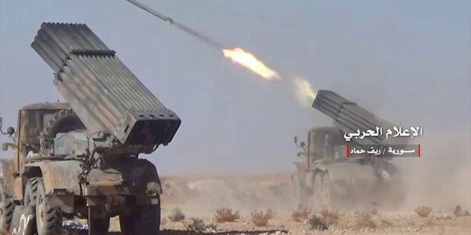 Корреспондент агентства САНА сообщил, что подразделения Сирийской армии, дислоцированные на окраинах поселка Атшан провинции Хама, нанесли массированные ракетные удары по террористам, пытавшимся проникнуть из поселка Скейк на юге провинции Идлеб в безопасные районы. Боевикам причинены потери в живой силе и технике.
