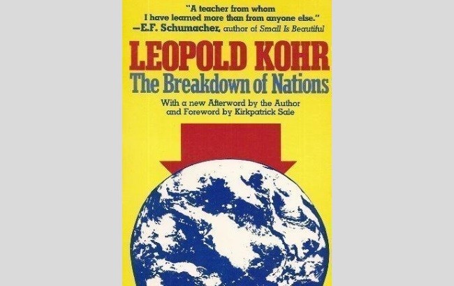 Первую написал юрист, экономист и политолог австрийского происхождения, около двадцати лет занимавший должность профессора экономики и государственного управления в Университете Пуэрто-Рико, Леопольд Кор, был вдохновителем движения «Малое - прекрасно». Сам он называл себя философским анархистом, хотя он никогда не пропагандировал антигосударственную деятельность. Он был противником крупных проектов, в том числе европейской интеграции. Леопольд Кор в 1941 г. предсказал не только ошибочность создания наднациональной системы в Европе, но и распад Советского Союза. Еще во время Второй мировой войны он проанализировал баланс этнических групп пришел к выводу, что как нацистский, так и советский режимы обречены. Как видим, его анализ оказался точным. Хотя мало кто обращается к теоретическим положениям этого автора.