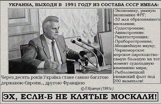 Выходя из состава СССР Украина имела весьма неплохие стартовые позиции, и всё необходимое для устройства процветающего государства.