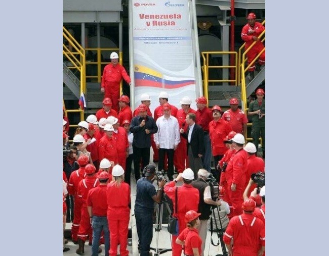 Нефть и оружие стали основой не только экономических, но, по сути, и политических отношений Москвы и Каракаса. На фото: Уго Чавес и Игорь Сечин (в ту пору – вице-премьер России) на нефтяной платформе у побережья Венесуэлы