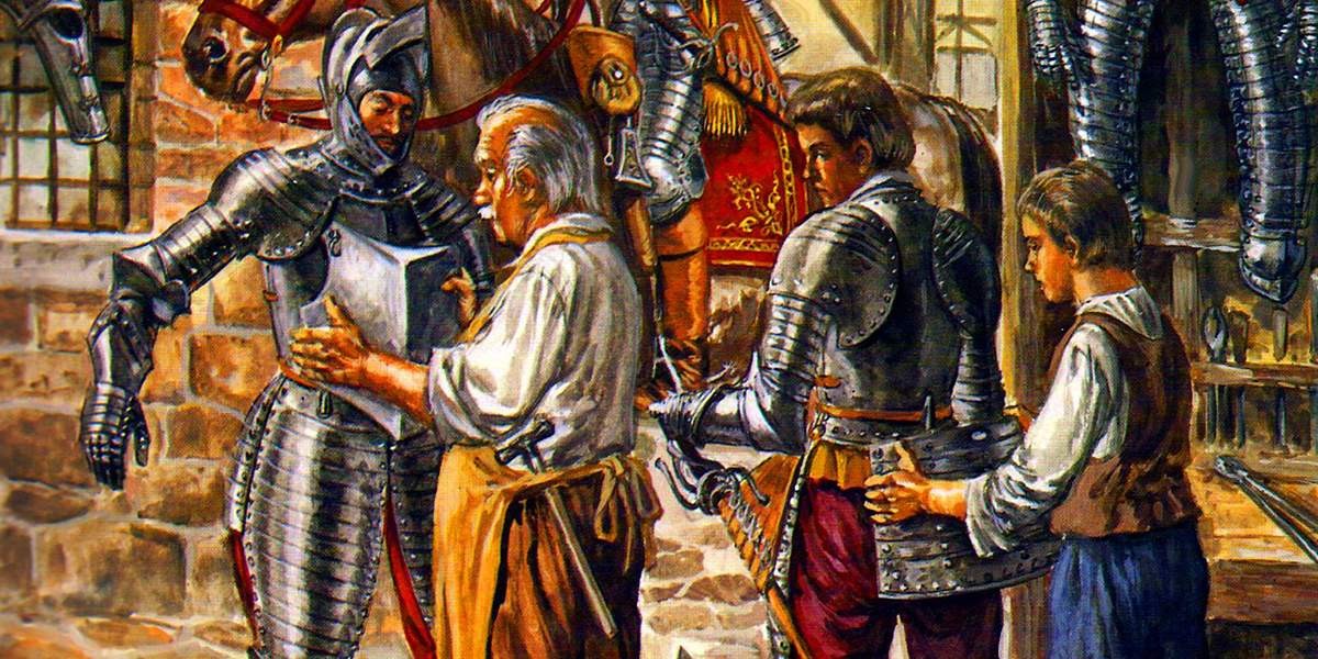 Качественные доспехи умели делать всего в нескольких регионах: Милане, Нюрнберге, Голландии. Поэтому долгое время попытки англичан завести у себя доспешное производство высокого качества заканчивались неудачей. До тех пор пока они не стали переманивать немецких бронников к себе на службу. Даже могущественный Карл V — глава Священной Римской империи и король Испании — вынужден был заказывать доспехи в Нюрнберге. В Кастилии просто не было мастеров такого класса.