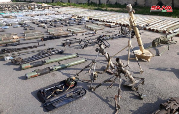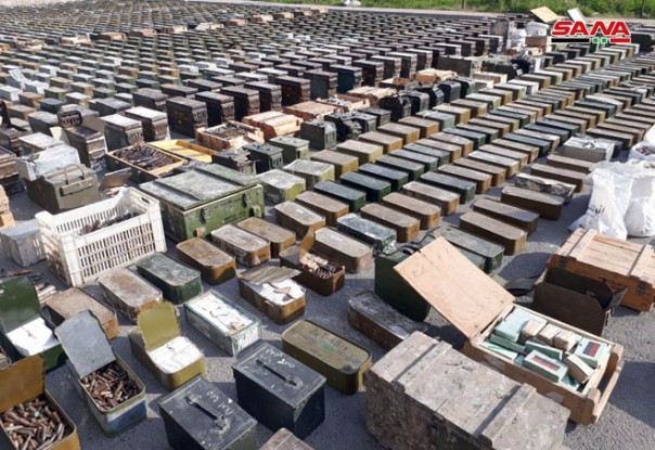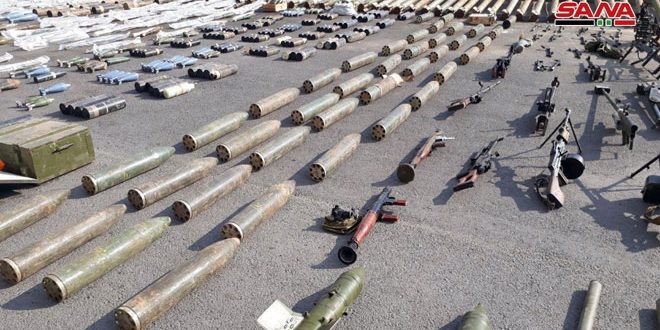 Корреспондент агентства САНА сообщил, что в провинции Дамаск компетентные органы обнаружили оставленные террористами боеприпасы, мины, различное оружие, а также ракеты израильского и американского производства.