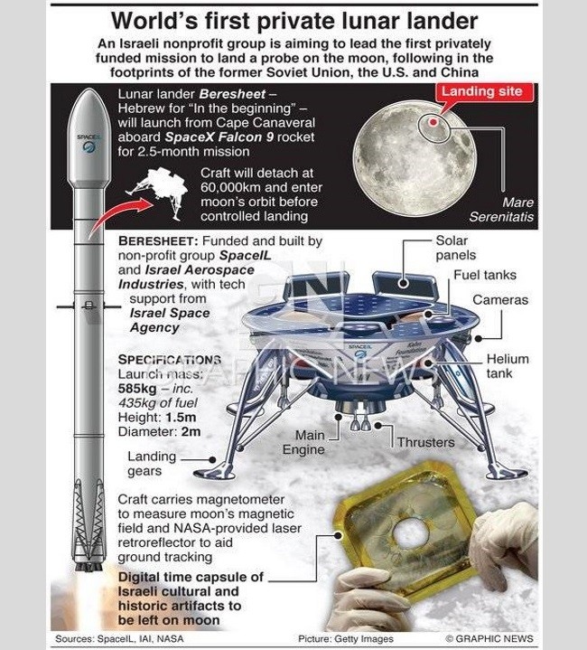 22 февраля Израиль сможет стать четвертой страной в мире, отправившей искусственный объект на Луну. Важно то, что сам луноход был спроектирован и создан на частные пожертвования.