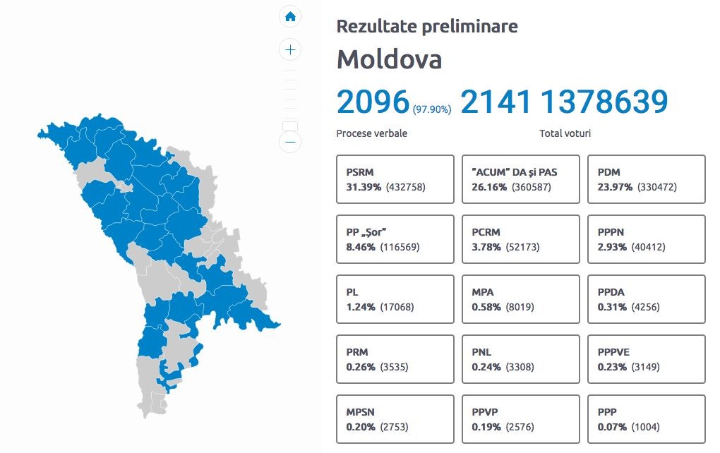Однако, как мы уже говорили, картина полностью меняется, если учесть итоги выборов по мажоритарным округам. Здесь лидирует ДПМ, у которой на данный момент 20 победителей, 15 – у ПСРМ, 11 – у ACUM, двоих, включая себя, провёл Илан Шор, трое – независимые (двое из них выбраны в ПМР).