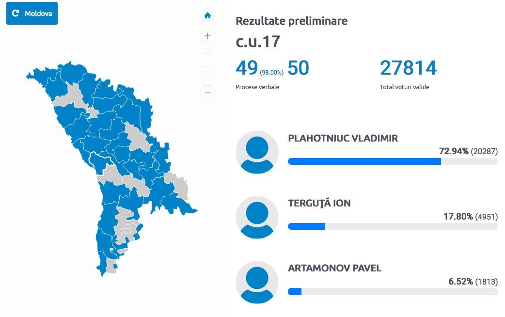 Несмотря на то, что и молдавский олигарх, и его премьер-министр ранее, согласно данным социологов, имели поддержку на уровне 1-6%, оба они одержали победу в округах с результатами 73% (Плахотнюк в Ниспоренах) и 45,6% (Филип в Страшенах). Результаты же кандидатов от ПСРМ в этих округах 6,5% и 11,9% соответственно.