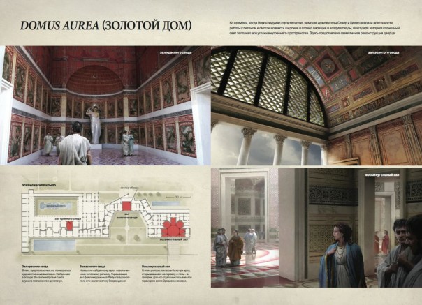 Дальнейшие раскопки открыли много удивительного: длинные колоннады, из которых когда-то открывался прекрасный вид на огромный парк и искусственный пруд; следы позолоты и обломки мрамора, добывавшегося на далеких карьерах Египта и Ближнего Востока; и ни с чем не сравнимый восьмиугольный зал с куполообразным сводом, строительство которого завершилось на шесть десятилетий раньше величественного Пантеона.