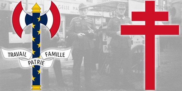 В годы оккупации во время Второй мировой войны вишистский режим, возглавляемый немецким ставленником маршалом Анри Филиппом Петеном, выбрал своим символом лабрис — двухлезвийный боевой топор с рукоятью в виде ликторского пучка. А сторонники генерала Шарля де Голля шли в бой под символом «Сражающейся Франции» — красным лотарингским крестом с шестью концами.