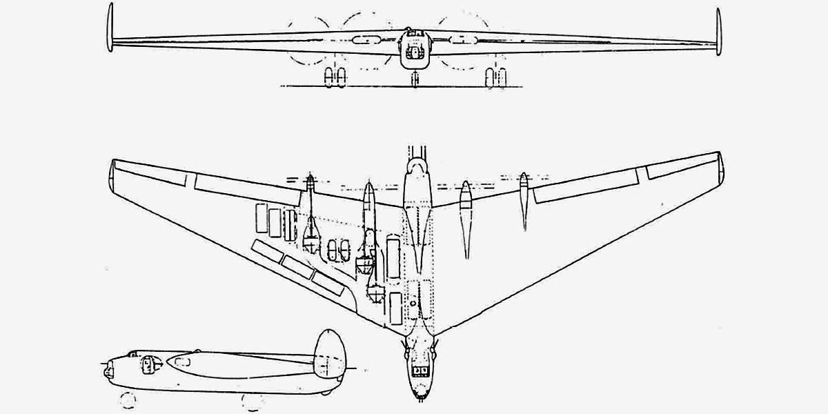 Вариант В напоминал А, но имел толкающие винты. Варианты С и D были выполнены по схеме «утка» и также различались толкающими и тянущими винтами. Наконец, Е был типичным самолётом-бесхвосткой. Из всех этих вариантов для финальных работ выбрали схему С, как наиболее соответствующую требованиям военных.