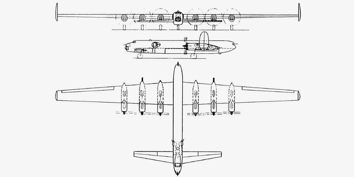 Проект высотного стратегического бомбардировщика «Виккерс», датируемый концом 1944 года. Один из возможных носителей английско-американского ядерного оружия