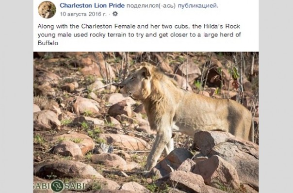 Рядом с южноафриканским парком Крюгера находится природный резерват Sabi Sand, где тоже можно встретить очень широкое разнообразие фауны. Один из местных львиных прайдов, Charleston Lion Pride, постоянно находится в поле зрения туристов и ученых. Грациозное семейство львов настолько знаменито, что получило собственную страницу в соцсетях.