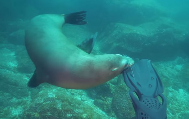 И это объяснение вполне правдоподобно: морские львы, действительно, достаточно игривы и сообразительны, они любопытны, им нравится исследовать окружающий мир с помощью зубов и проверять его на прочность. Источник