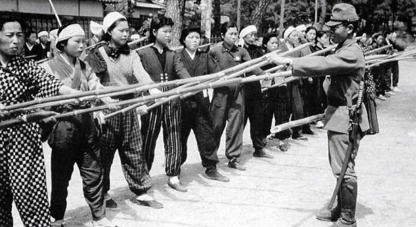 В 1945 году планы японских стратегов были гораздо масштабнее. В Народный добровольческий корпус подлежали призыву (добровольно разумеется, а кто не доброволец — стенка вон там) все мужчины от 15 до 60 лет и незамужние женщины в возрасте от 17 до 40 лет. Общее число потенциальных «добровольцев» составляло 28 миллионов. Первоначально эти подразделения привлекались к тушению пожаров, но в дальнейшем начали получать и военную подготовку. Правда, очень специфическую.