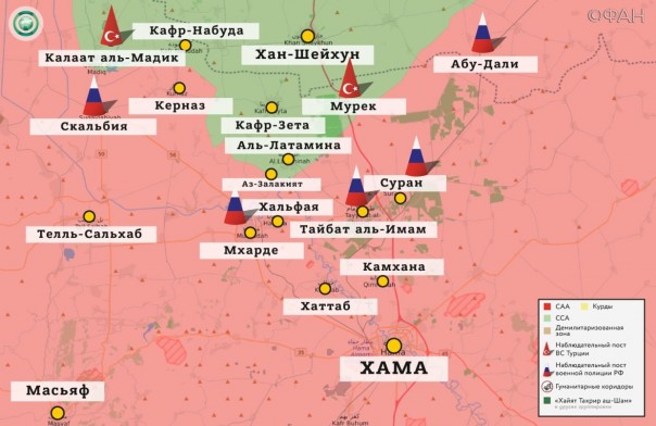 Сирийская арабская армия (САА) и союзные силы: обмениваются ударами с боевиками в северной части Хамы и на юге Идлиба.