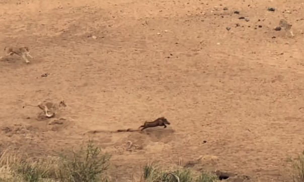 Спасение года: бородавочник убежал от 7 голодных львиц
