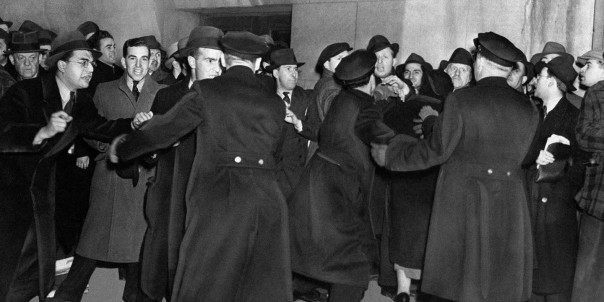 В толпу на очередном нацистском митинге, организованном Германо-американским союзом (нацистская организация в США. — Прим.ред.), врывалось несколько десятков накачанных еврейских парней с дубинками, кастетами и прочими подручными средствами. После чего начинался жестокий мордобой: ломались ребра, аппаратура, срывались и сжигались флаги со свастикой. Или евреи врывались на собрание и выкидывали агитаторов из окон. Нацисты пытались скрыться кто куда, их ловили, опять били и только потом расходились по домам.