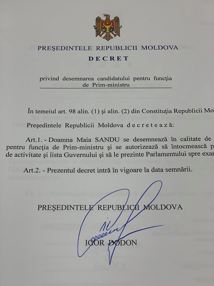 Спустя несколько часов в Молдове появился и новый премьер — либералка Майя Санду.