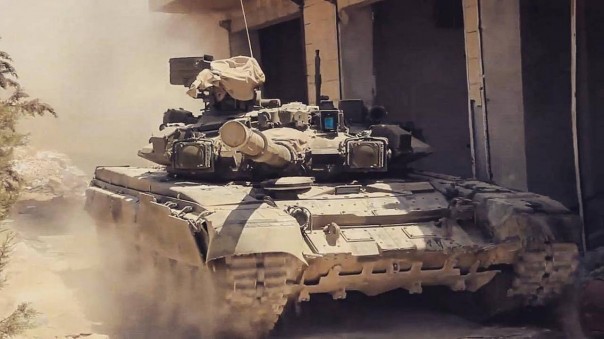 Однако, в некоторых случаях, новые танки применяют и в дневных условиях. В частности, на данном видео видно, как Т-90 ведет огонь на ходу по позициям боевиков, подавляя их огневые точки и поддерживая пехоту САА.