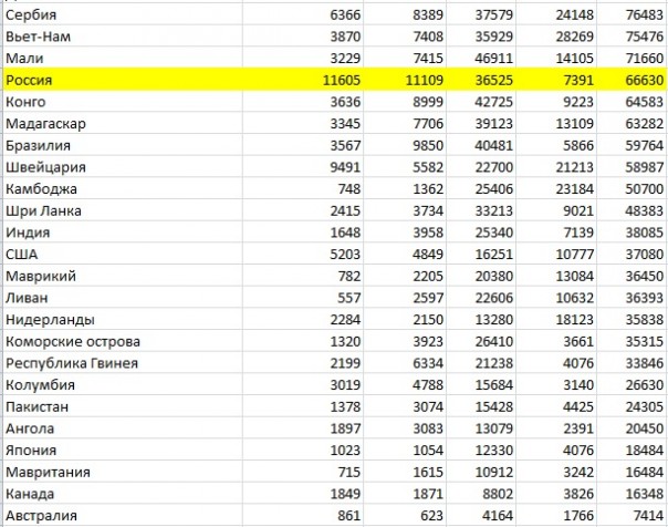 Основываясь на предельно официальных и подробных данных самих стран Запада мы не только выявили всю бредовость утверждений российской либероты про "скрывание правды о массовом бегстве" и про само это "массовое бегство". Теперь я уже с цифрами в руках готов утверждать, что мы в физической реальности (а не в интернетном нытье) имеем дело с прямо противоположным феноменом- с поразительным (и математически подтверждаемым) домоседством россиян. С поразительным нежеланием куда-либо эмигрировать. Во Францию и Британию валят из нищих стран Африки и Азии и из богатых стран Европы и Северной Америки. Из стран географически близких и самых отдаленных (посмотрите на цифры мигрантов из Австралии!). Из стран бывших их колониями и стран никогда не бывших таковыми. Но вероятность родиться в России, а жить во Франции и Британии (доля родившихся в России среди тамошних мигрантов) даже близко не дотягивает хотя бы до доли России в населении планеты.