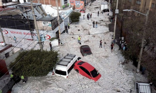 30-градусную Гвадалахуру завалило двухметровым слоем града. (Фото, видео)