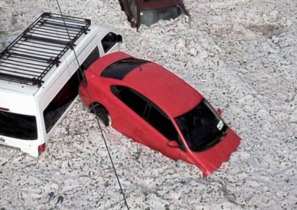 И как раз во время этой парилки произошел невиданный ранее град. Жители города проснулись и ахнули: улицы ушли под ледяной покров. Автомобили оказались погребёнными под двухметровым слоем льда. Пока дети бегали и швыряли друг в друга ледяные шары, сотрудники гражданской защиты и солдаты вышли на улицы для расчистки улиц от града. О жертвах не сообщается, но два человека доставлены в госпиталь с признаками переохлаждения, заявило государственное управление гражданской защиты. Источник