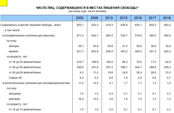 1) Сначала о статистике по современной РФ. С ней проще всего. Спасибо Росстату, они не стали наводить тень на плетень. И в одной таблице чёрным по белому сказано и про заключенных колоний и про заключенных тюрем и про находящихся в СИЗО. Таким образом, мы можем судить о численности (и её динамике) всех заключенных и не гадать о каком круге идёт речь.