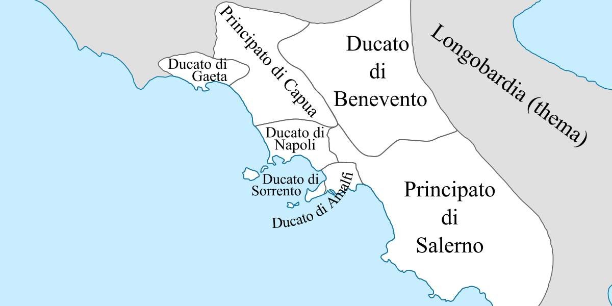 Неаполем правил герцог Сергий I, первый независимый его правитель. Этот ещё недавно не слишком значимый феодал оказался у руля Неаполя почти случайно. До него герцогов-дуксов, а точнее магистров милитес, назначали или утверждали в Константинополе. Но его предшественник Андрей слишком запутался в политических играх — герцога убил посланник призванных на помощь франков.