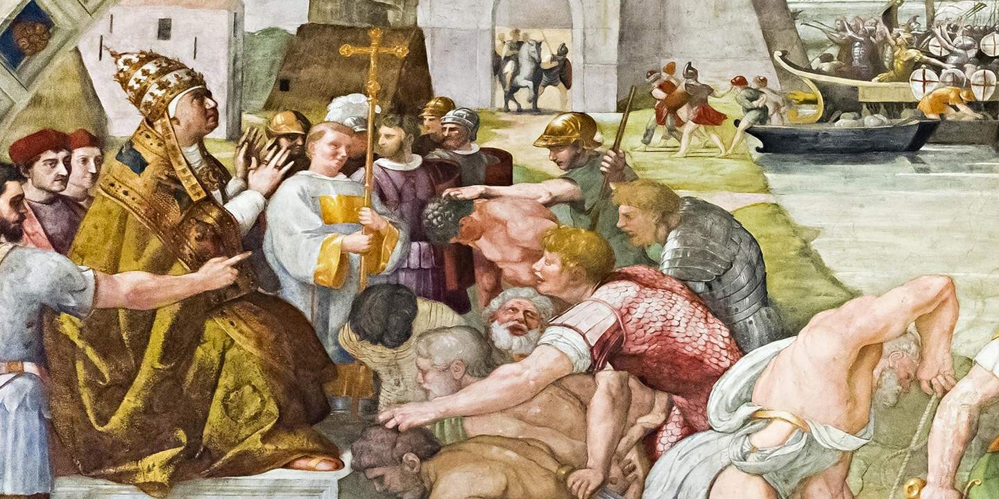 В январе 847 года скончался папа Сергий II, не сумевший организовать защиту святынь Рима от сарацинского вторжения. Римляне, не дожидаясь слова императора Лотаря, провозгласили папой кардинала базилики Санти-Куаттро-Коронати. Он взошёл на святой престол под именем Льва IV. Напомню, до появления института выбора пап конклавом кардиналов оставалось два века, а до того понтифики приходили к власти весьма разнообразными способами.